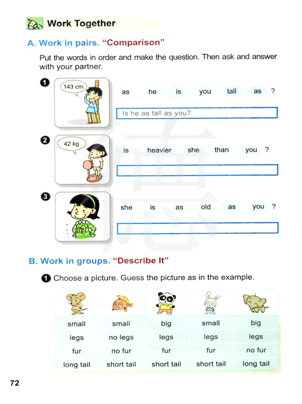 给单词排序并提出问题。然后和你的同伴问一问并回答。