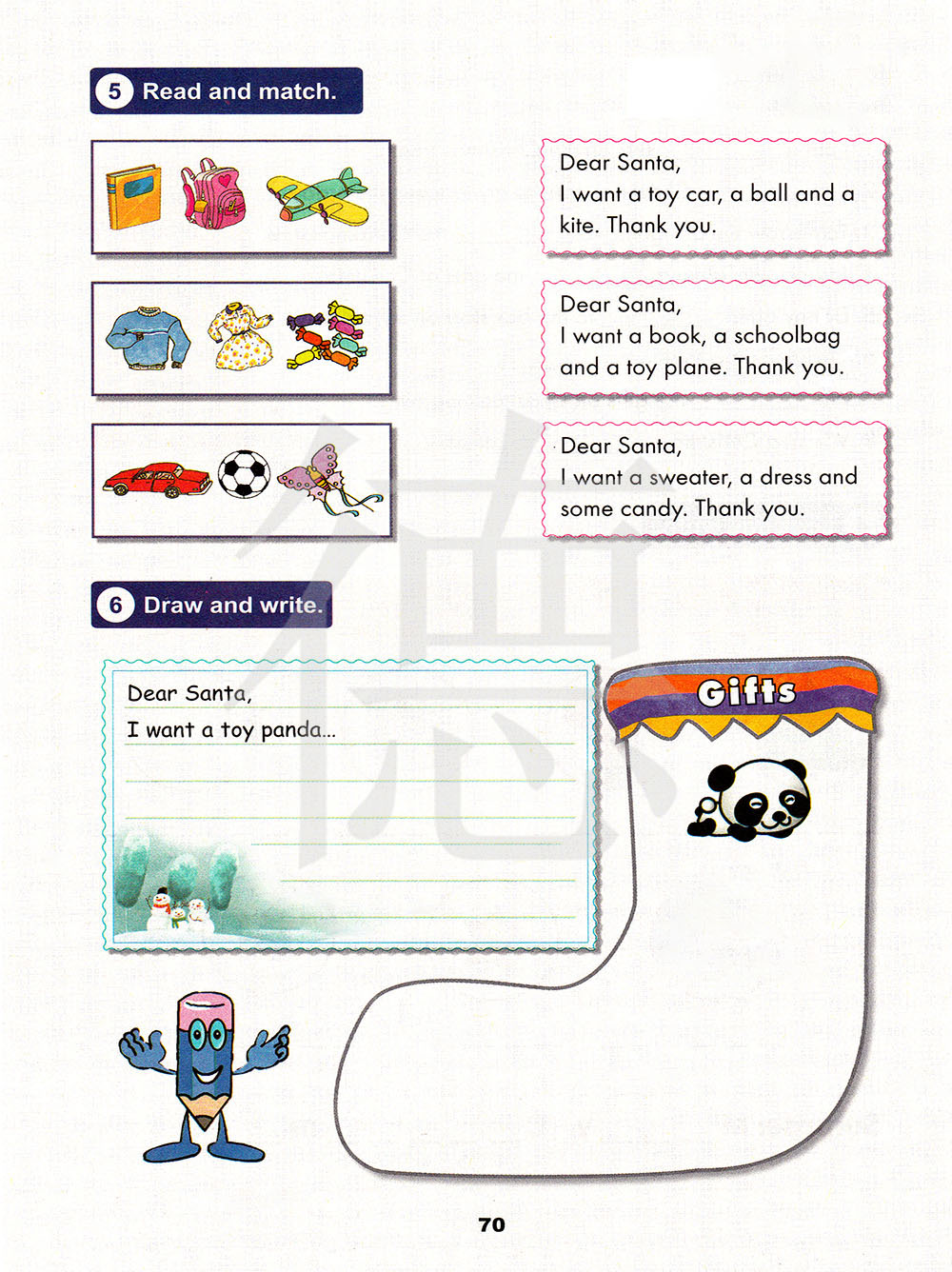 我想要一辆玩具车,一个球和一个风筝。谢谢。