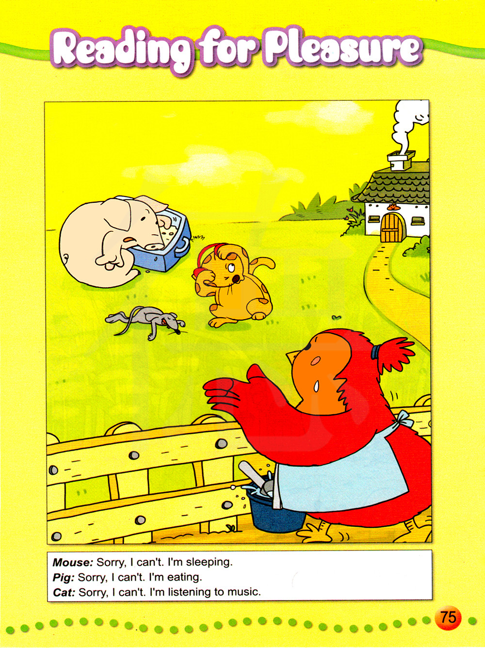 对不起,我不能。我正在睡觉。 对不起,我不能。我正在吃东西。 对不起,我不能。我正在听音乐。