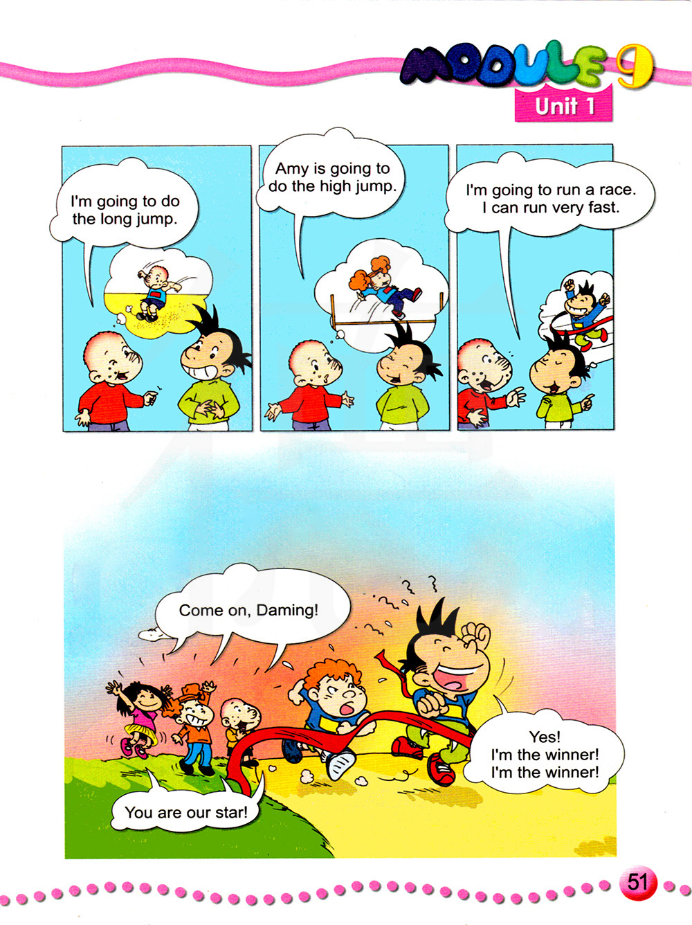 我要参加赛跑。我能跑得很快。