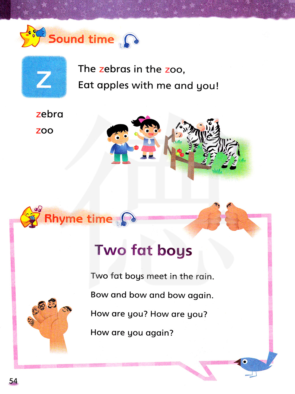 两个胖男孩,相遇在雨中,鞠躬鞠躬再鞠躬;你好吗?你好吗?再问一遍你好吗。