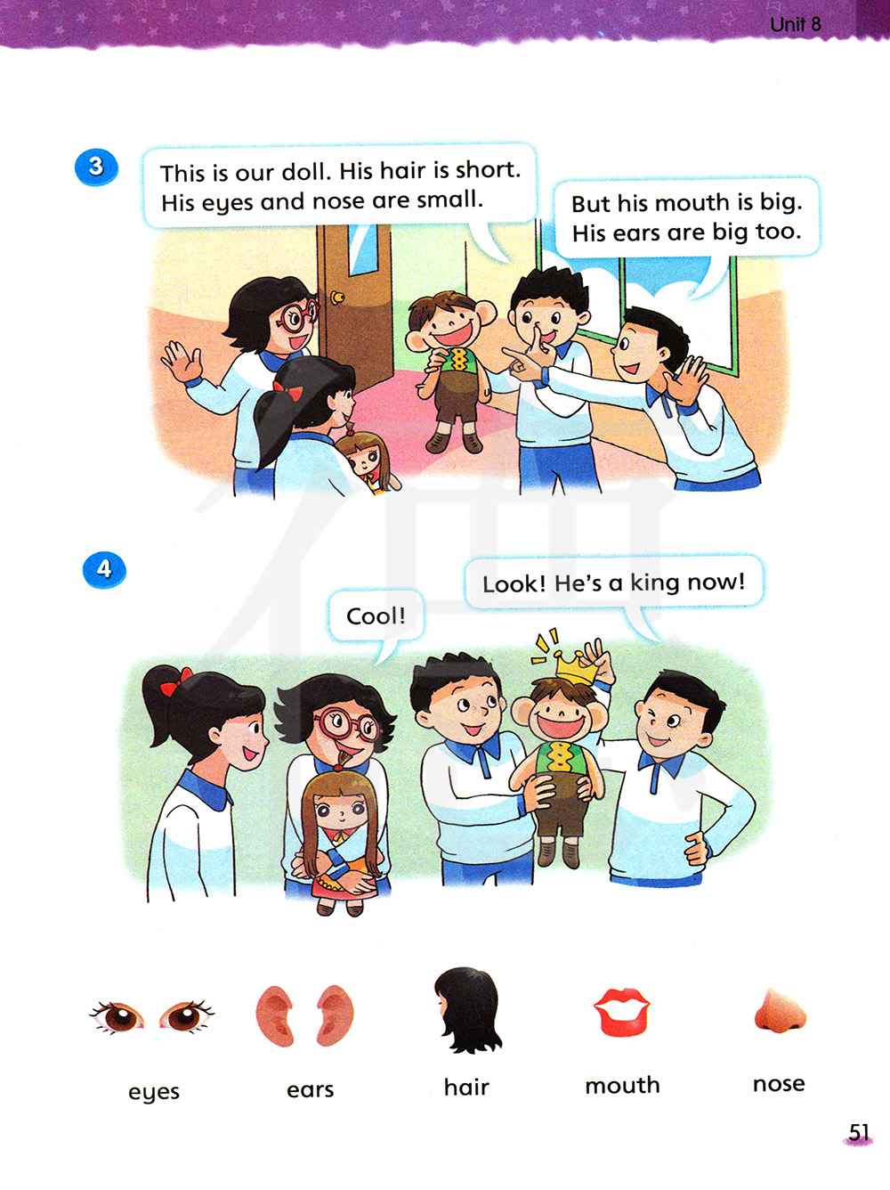 三会:hair 头发 mouth 嘴巴 nose 鼻子 king 国王 snowman 雪人