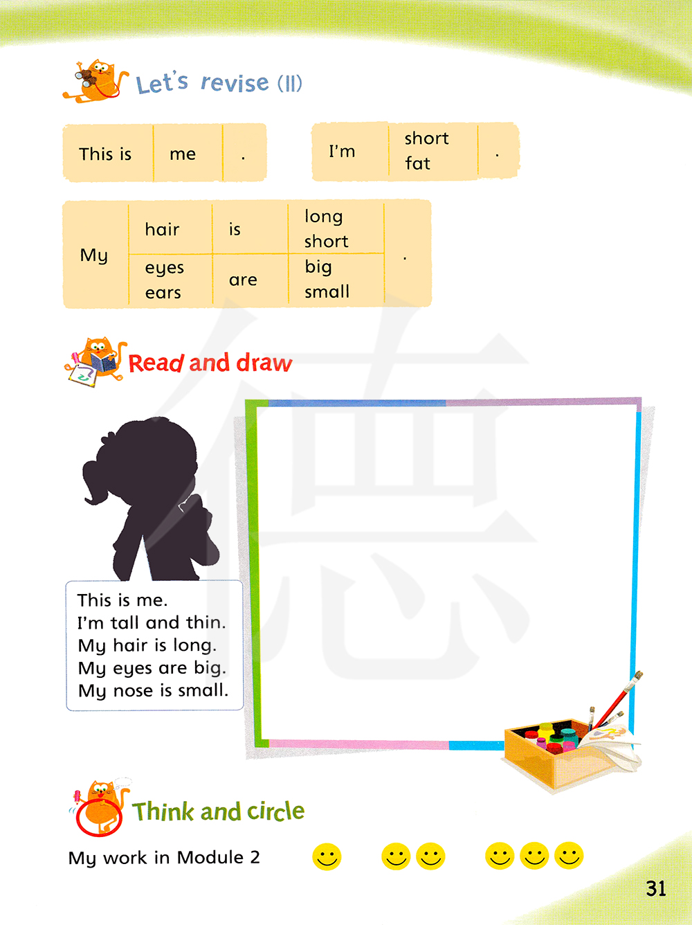 这是我,我又高又瘦,我的头发很长,我的眼睛很大,我的鼻子很小。