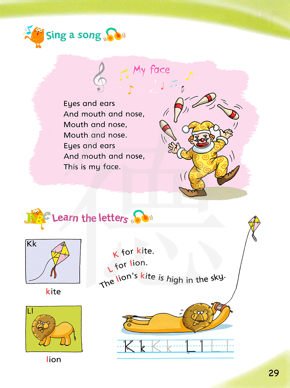 K是风筝,L是狮子。狮子的风筝在高高的天空。