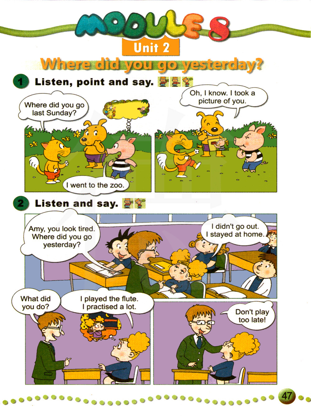 听录音,指一指,说一说。