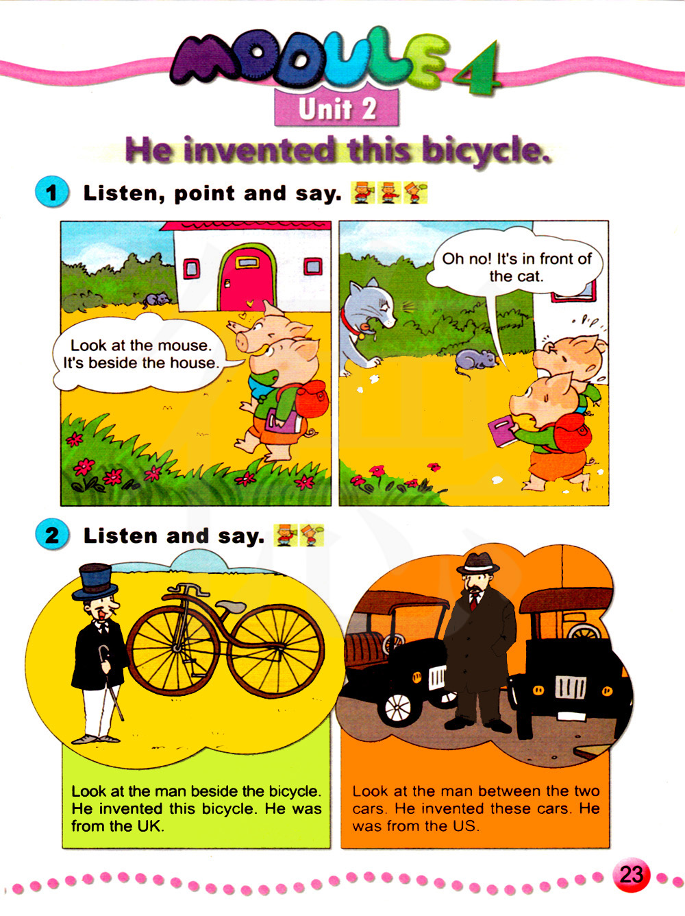 看这个自行车身边的男人。 他发明了这辆自行车。 他来自英国。
