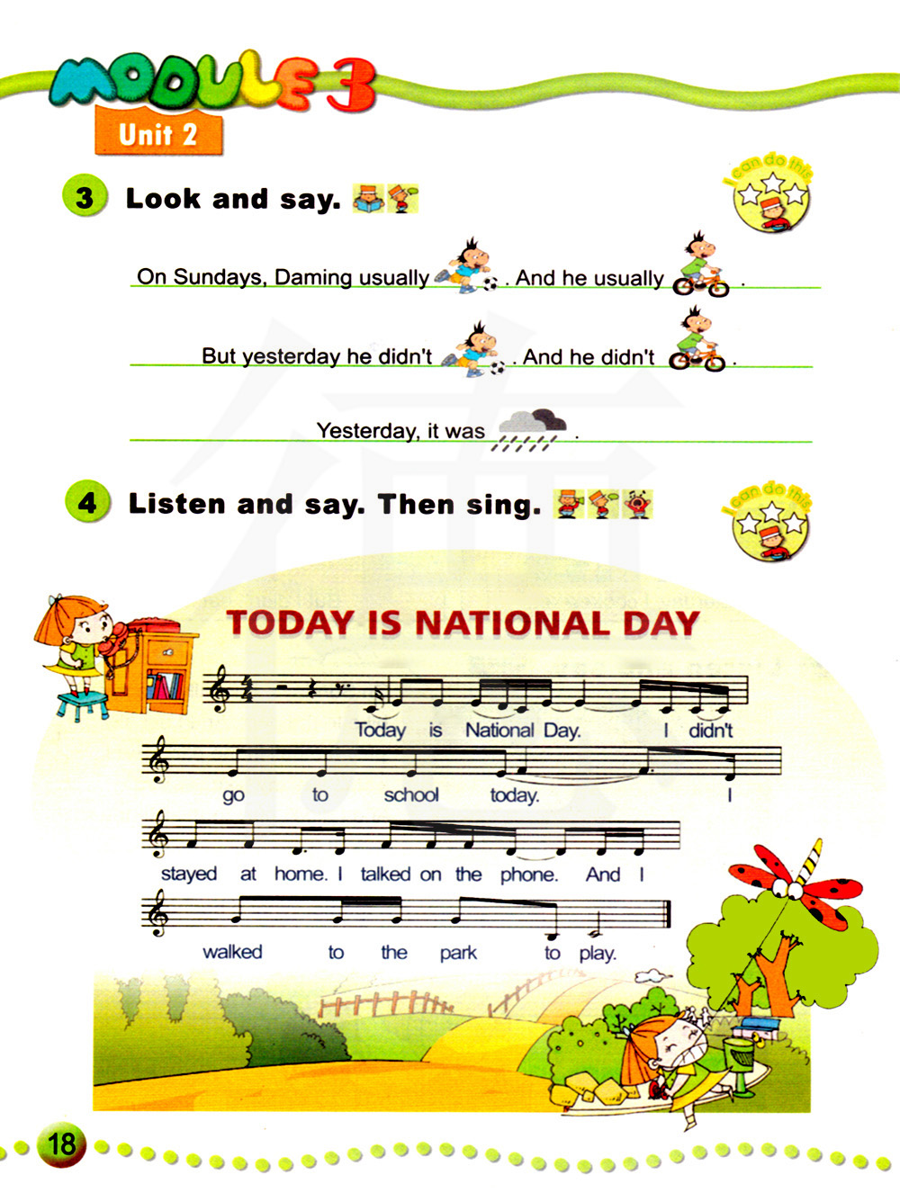在星期天,大名经常踢球和他经常骑自行车, 但是昨天他没有踢球和骑自行车, 昨天,它下雨了
