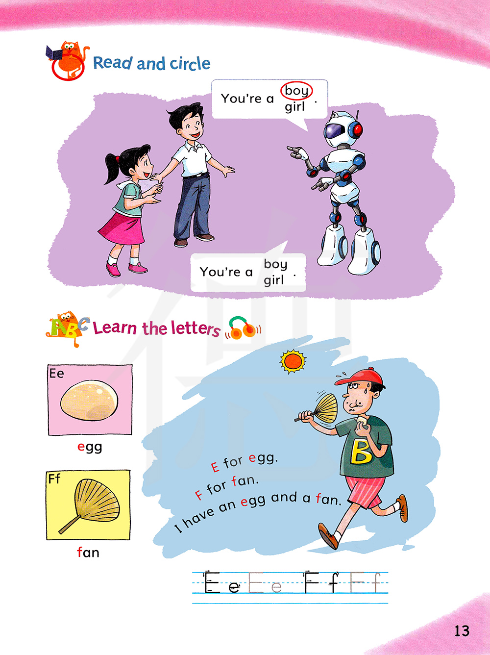 E是鸡蛋 F是扇子。我有一个鸡蛋和一把扇子。