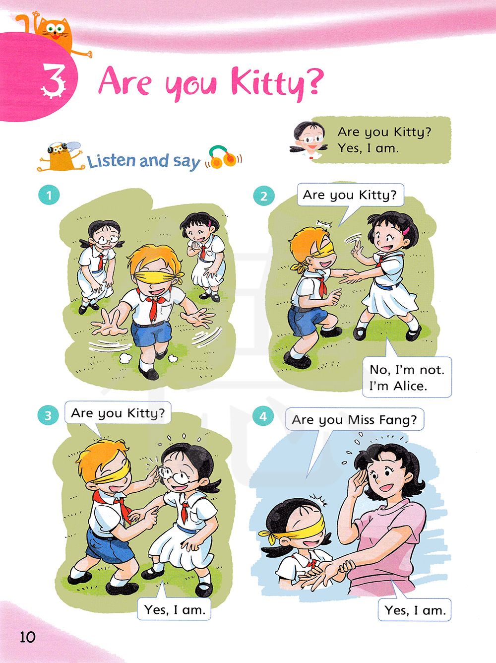 学会确认别人的名字,如: Are you Kitty?