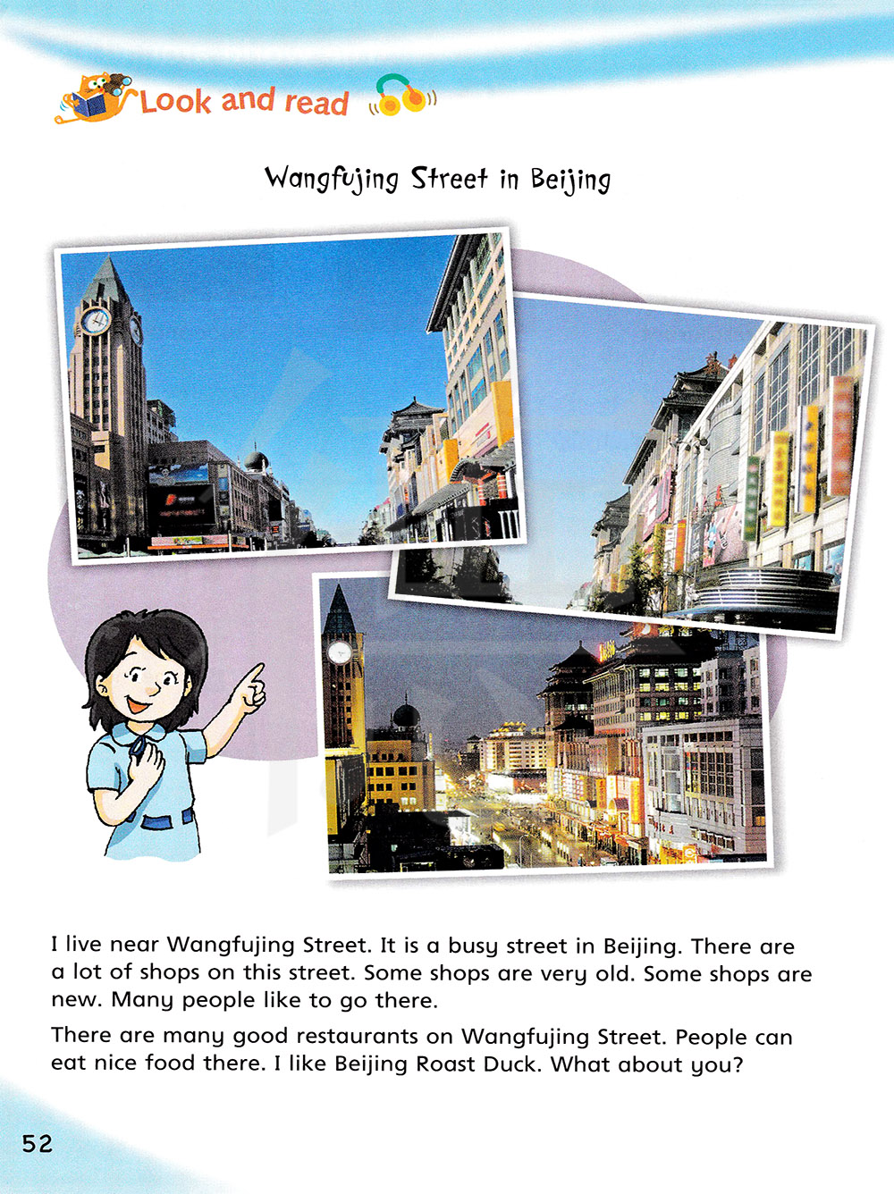 我住在王府井大街附近。这是北京的一条繁忙的街道。街上有很多的商店。有些商店很旧,有些商店很新。很多人喜欢去那里。