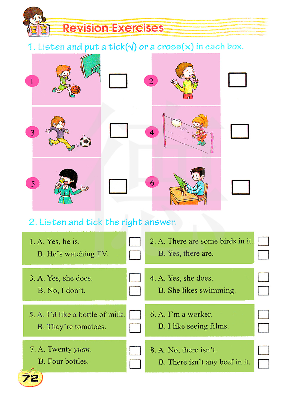 2.听录音,打对勾,选出正确的答案。