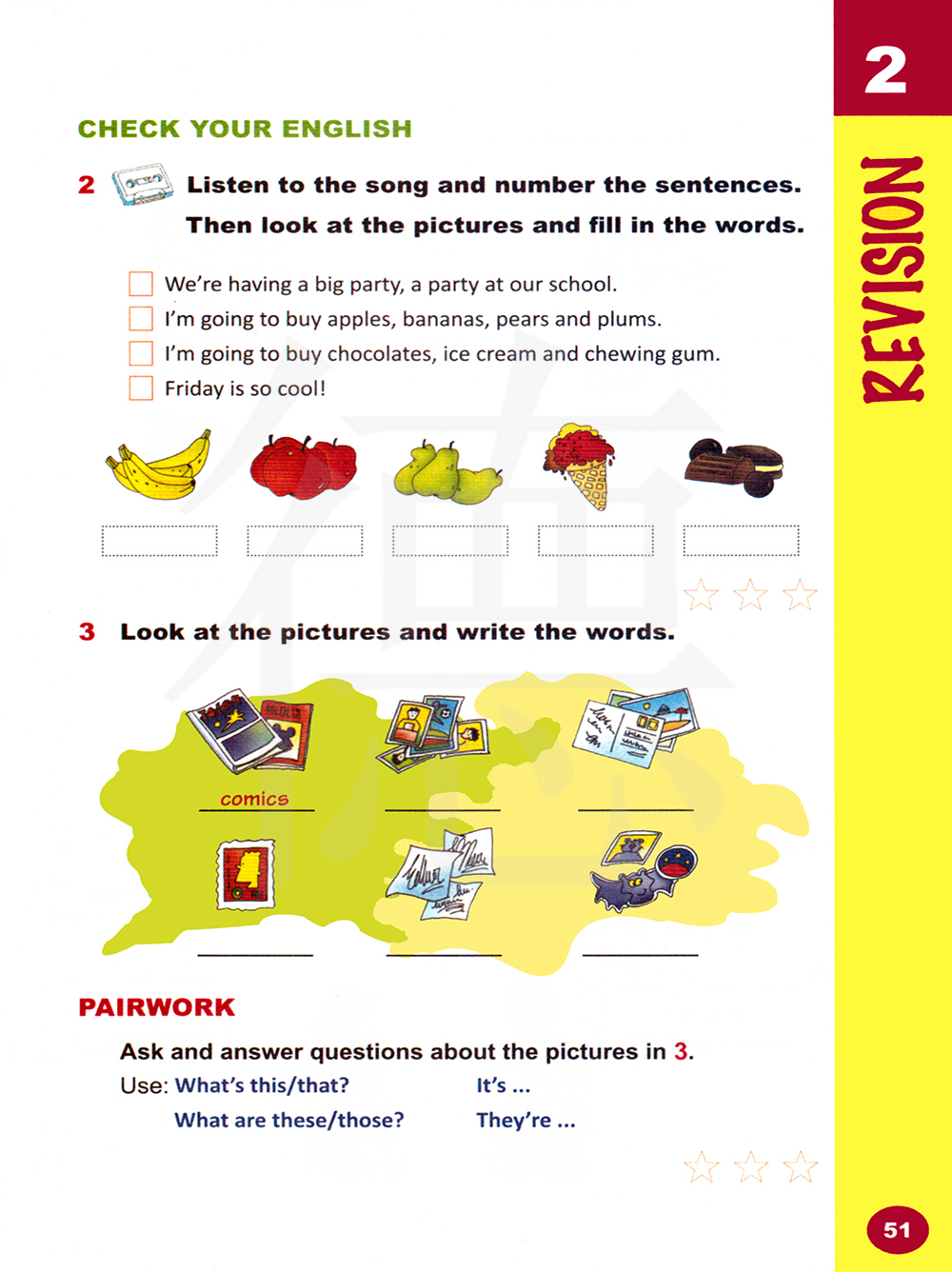听这首歌曲并给句子标序号,然后看图片并填单词。