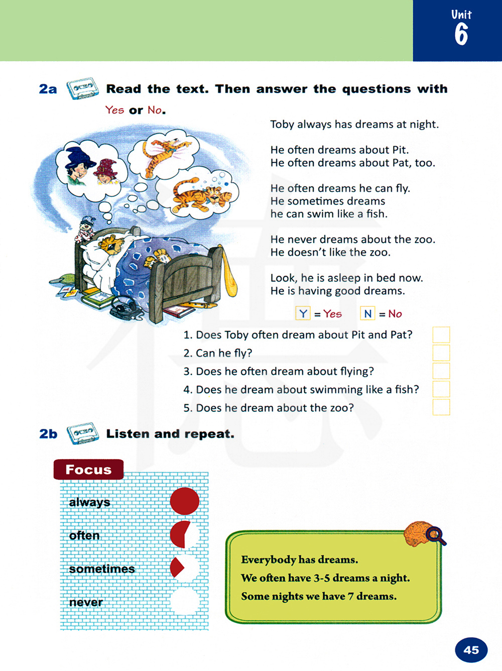 他经常梦到他会飞。他有时梦到他能像鱼一样游泳。