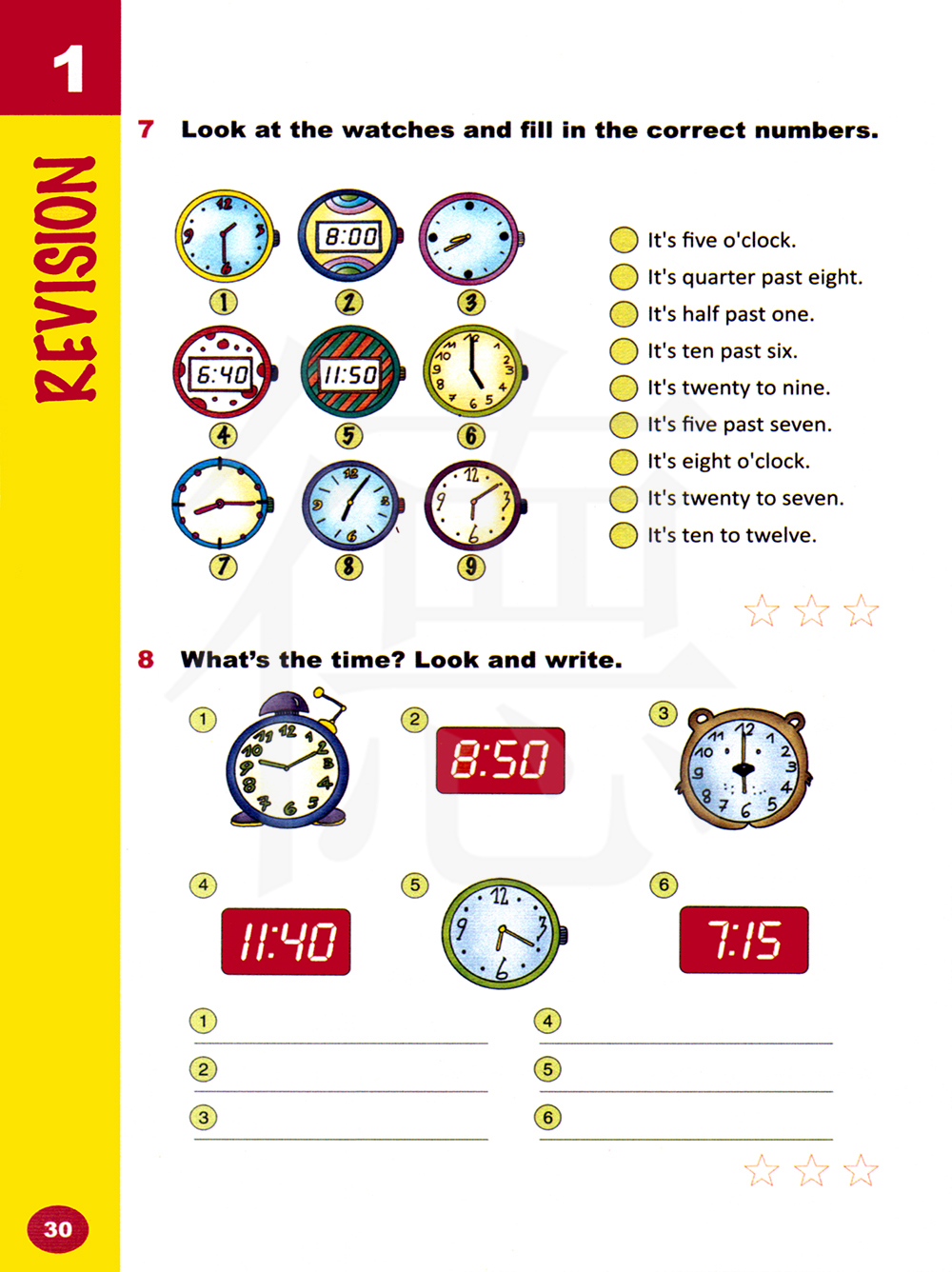 几点了?看一看并写一写。