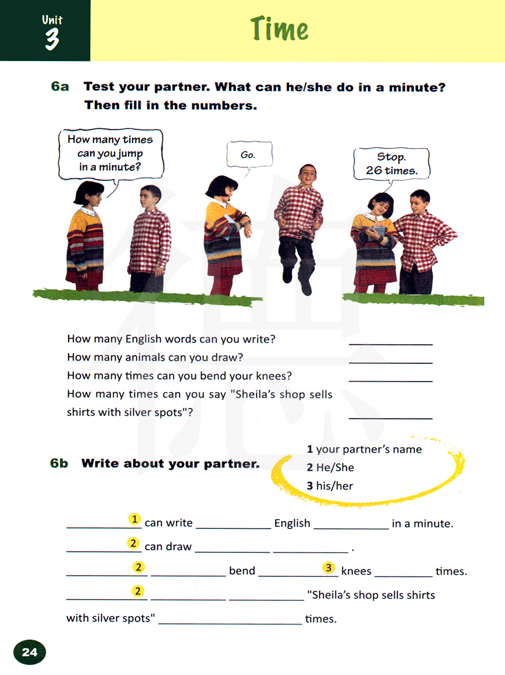 测验你的搭档。看他/她在一分钟能做多少?然后填上数字。