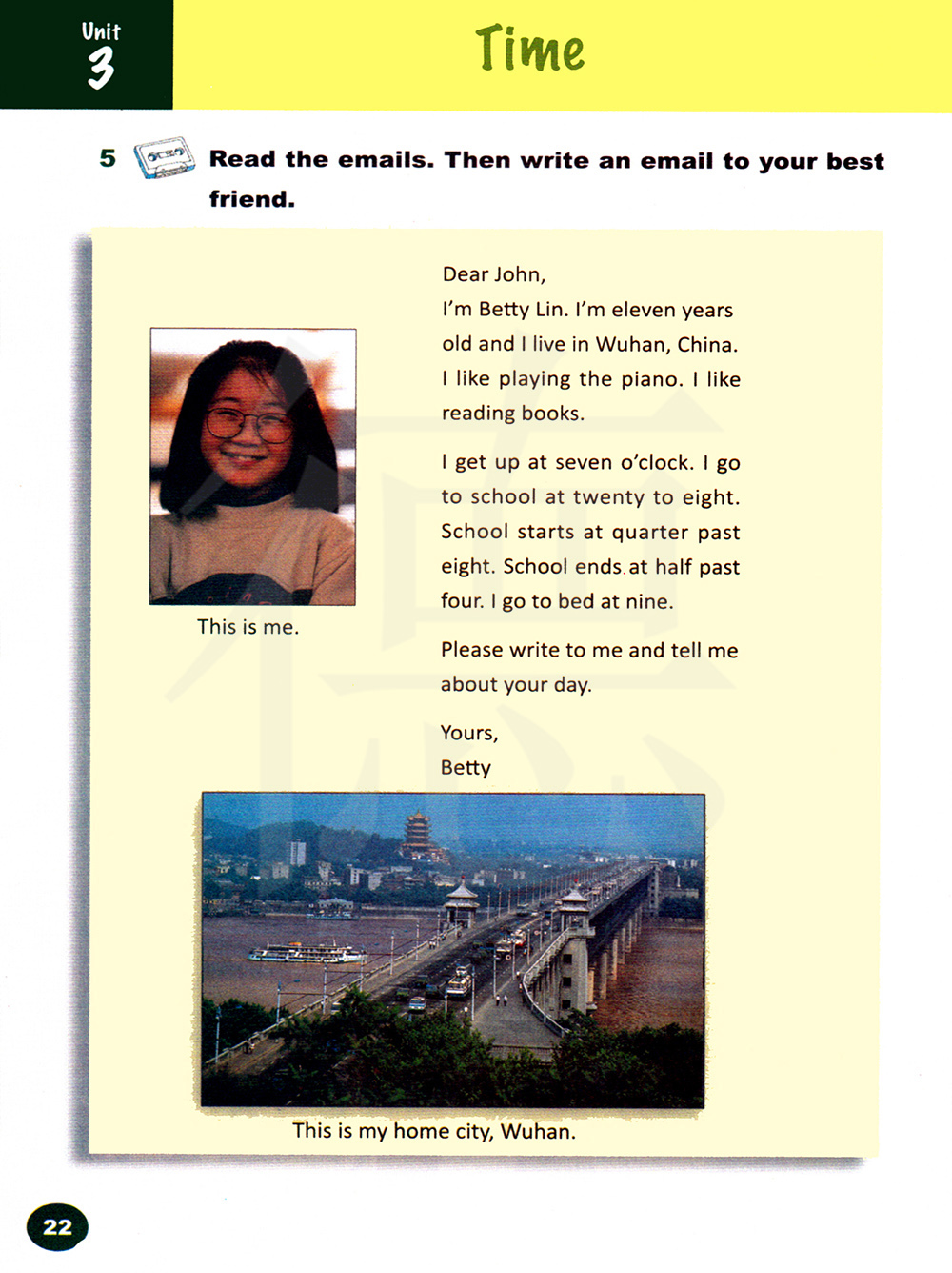 我是林贝蒂。我今年十一岁了,我住在中国武汉,我喜欢弹钢琴,我喜欢看书。