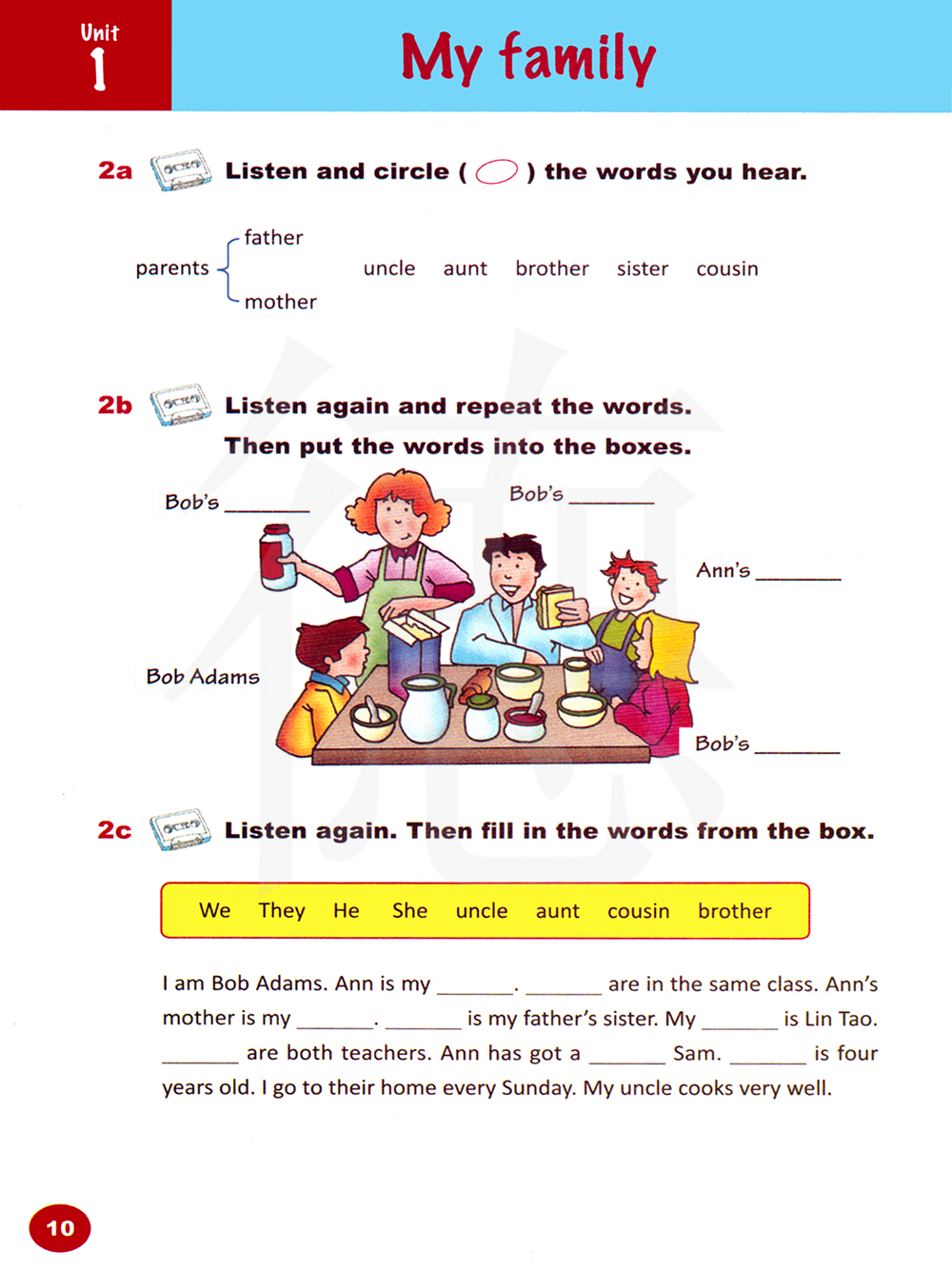 我们 他们 他 她 叔叔;舅舅;姑父 阿姨;姑姑;婶婶 堂(表)兄弟;堂(表)姐妹 兄弟