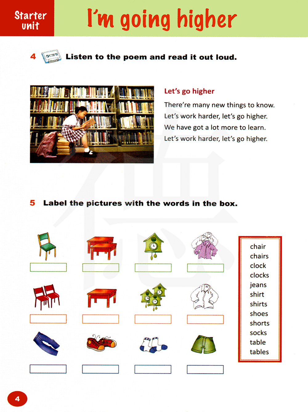 用方框里的单词给图片写上标签。