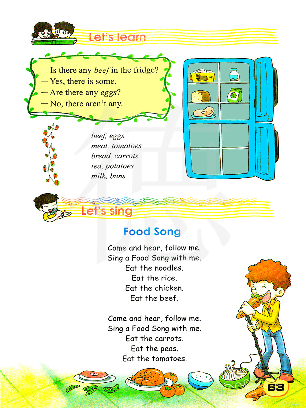 冰箱里有牛肉吗?是的,有一些。有鸡蛋吗?不,一点儿也没有了。