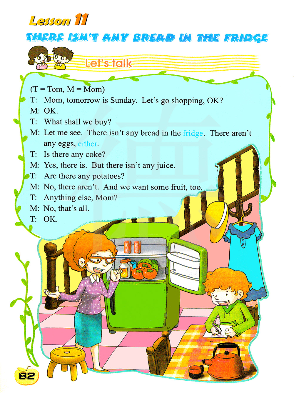 tell v.告诉 story n.故事 hear v.听见 fridge n.冰箱 either 也不