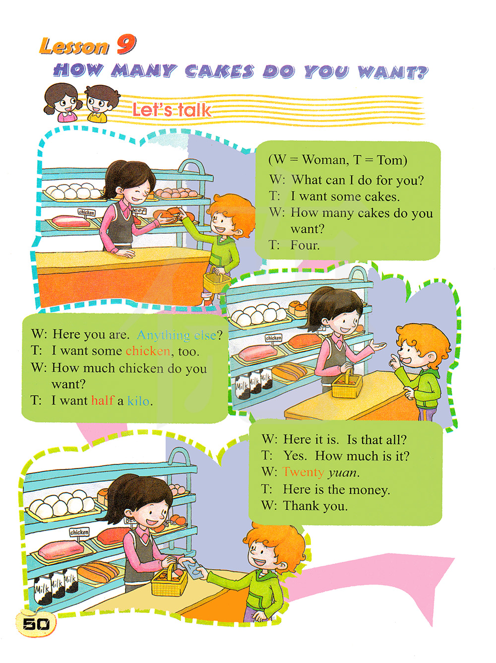 How much chicken do you want? (对不可数名词提问) I want half a kilo.