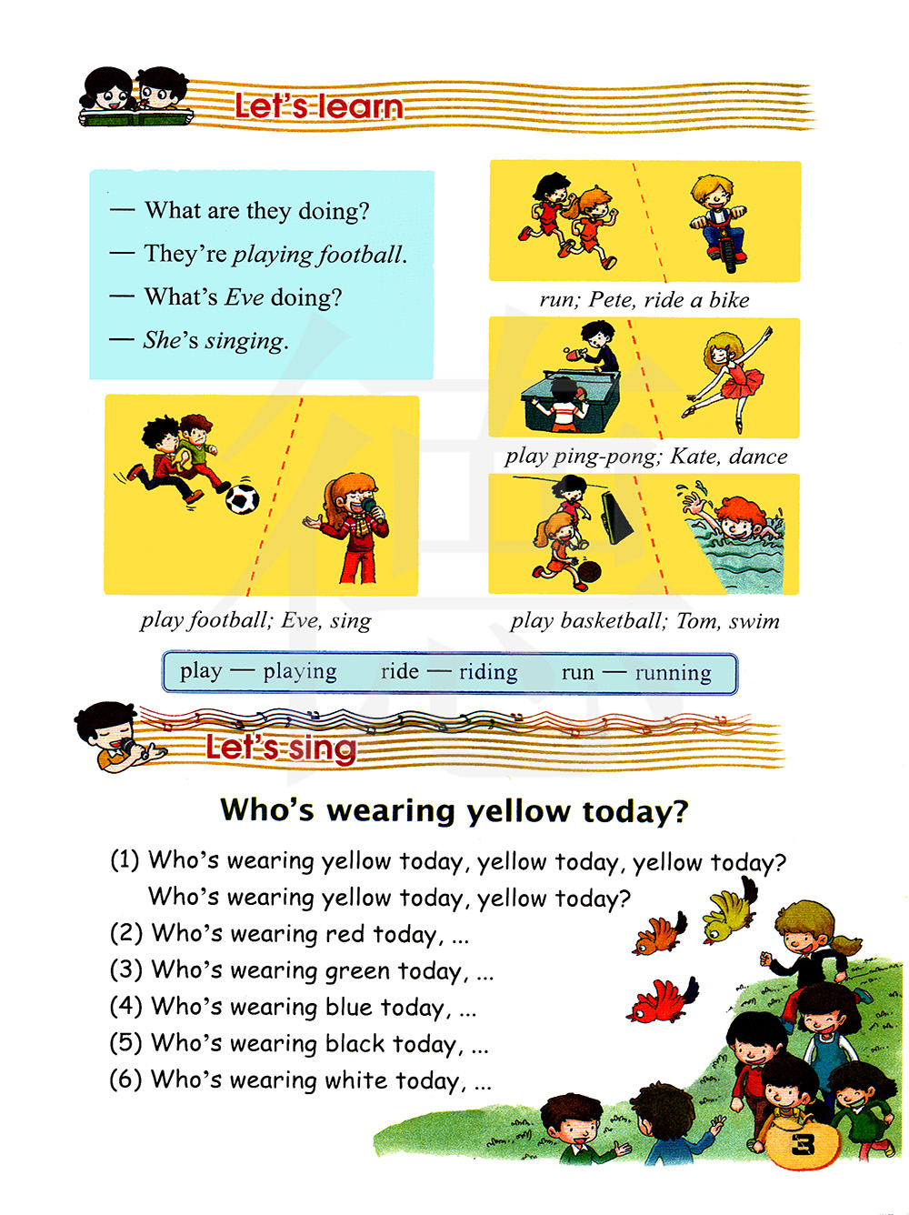 踢足球;伊芙,唱歌