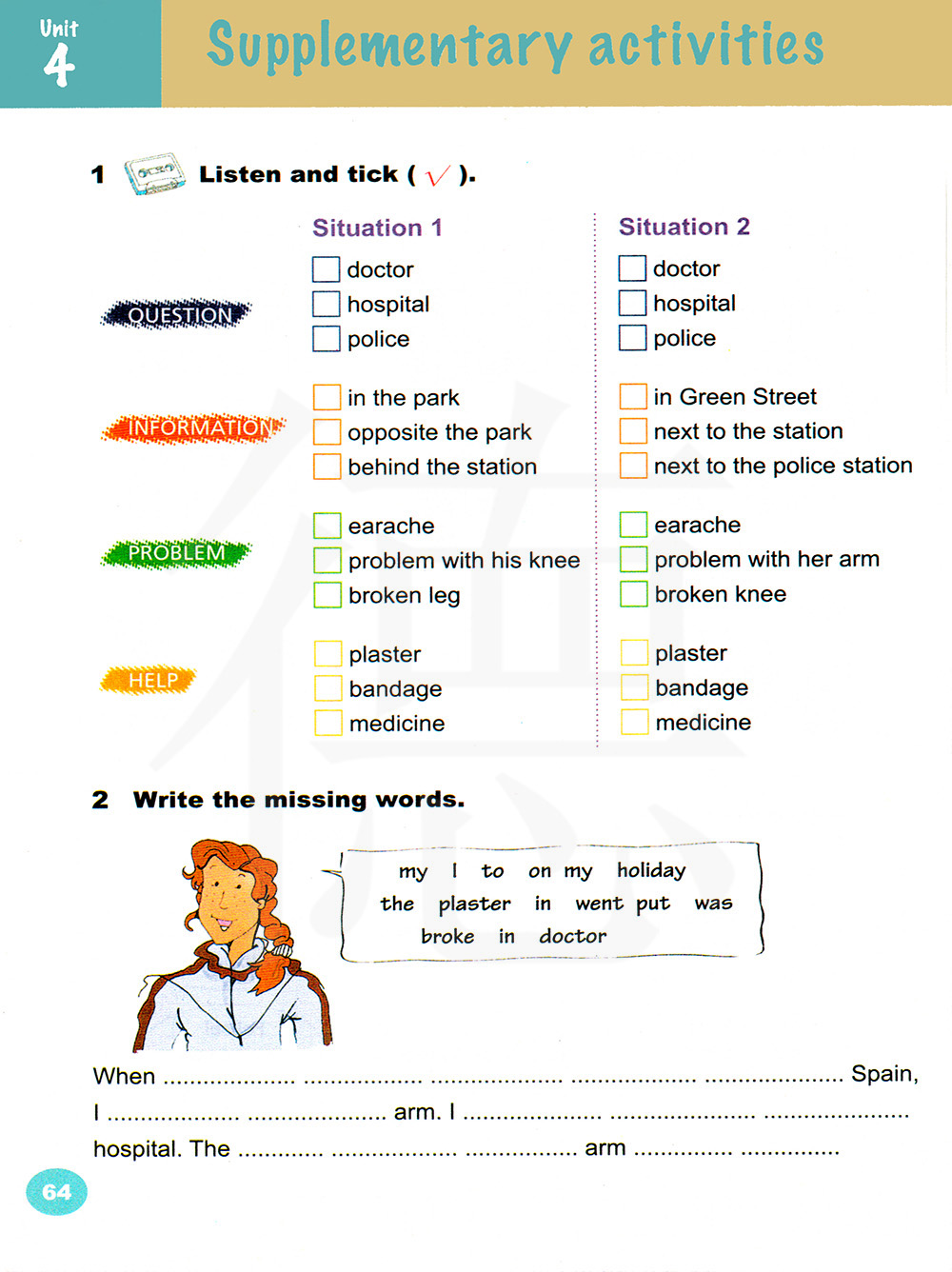 我的 我 去 在......上 我的 假日 这 石膏 在......里面 走 放置 是 打破,断掉 在......里 医生