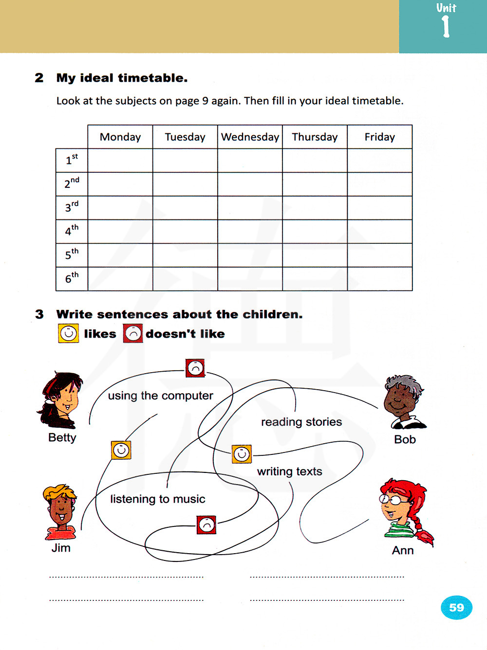 再看一看第9页的科目。然后填上你理想的课程表。