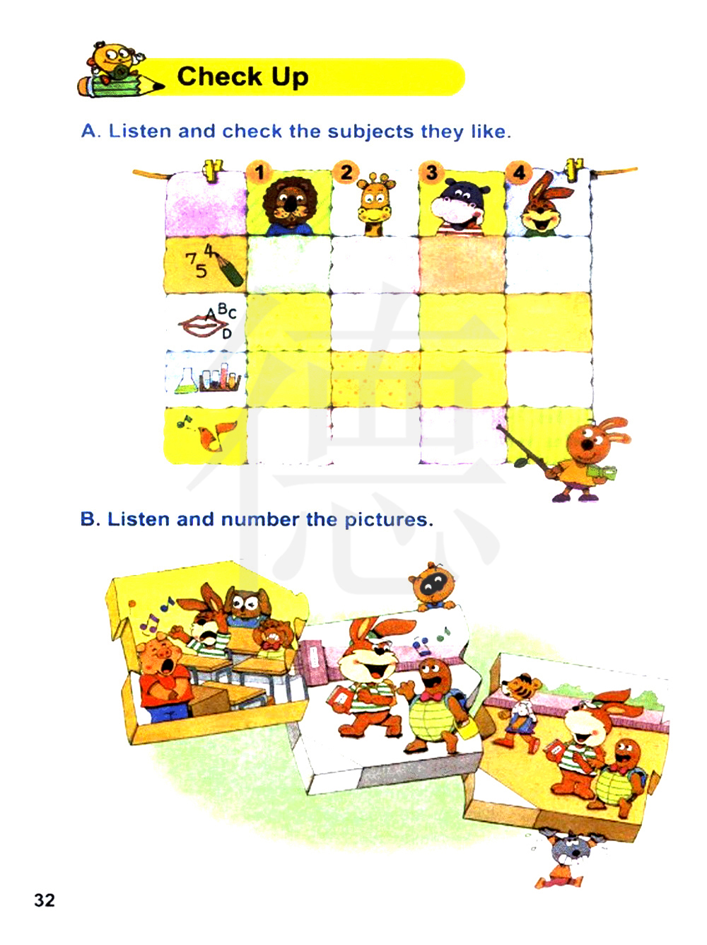 听录音并检查一下他们喜欢的科目。