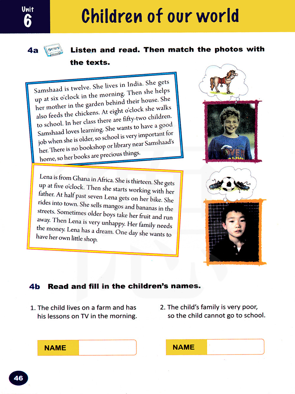 4a 听一听并读一读。然后把照片和文本进行搭配。