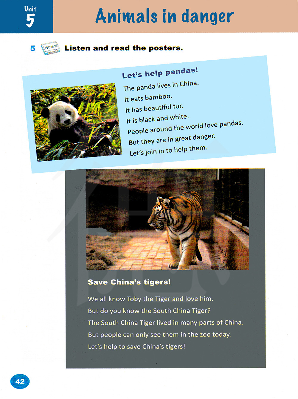 5 听一听并阅读海报。