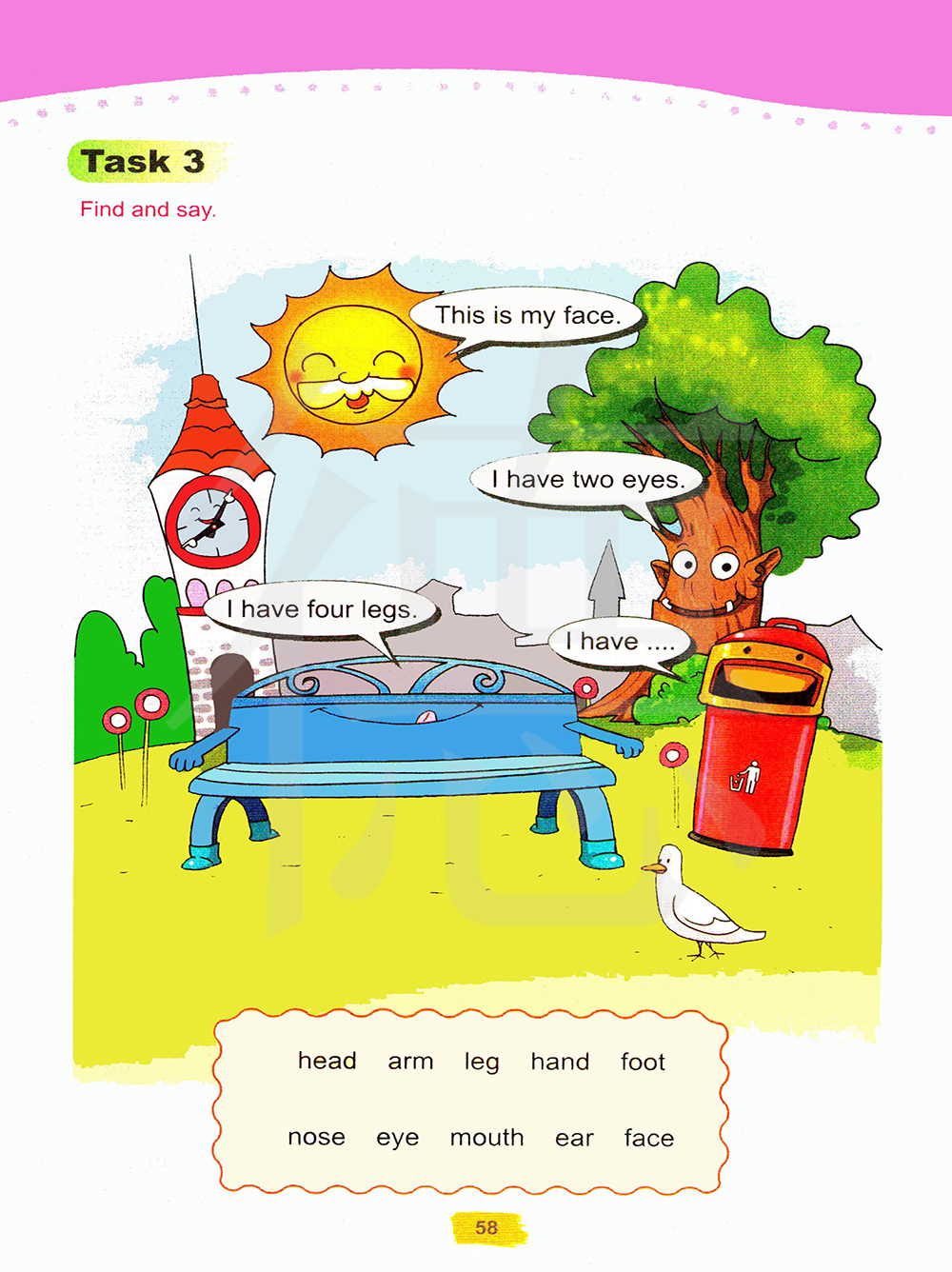 头 胳膊 腿 手 足;脚 鼻子 眼睛 嘴,口 耳朵 脸