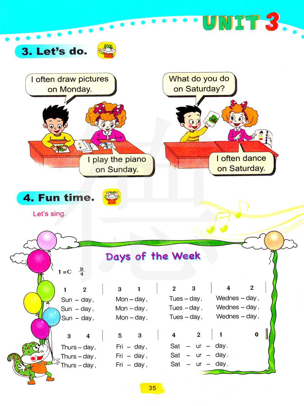 我在星期日弹钢琴。