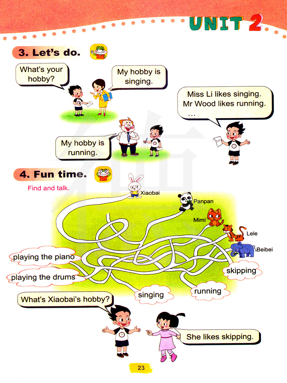 李小姐喜欢唱歌,伍德先生喜欢跑步。