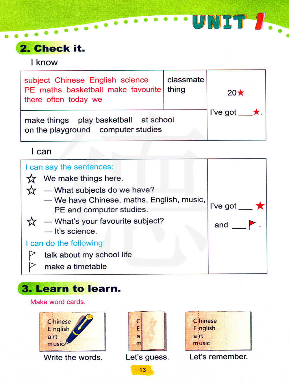 科目,课程 语文 英语 科学 体育 数学 篮球 制造 做 最喜欢的 那里,那儿 经常 今天 我们