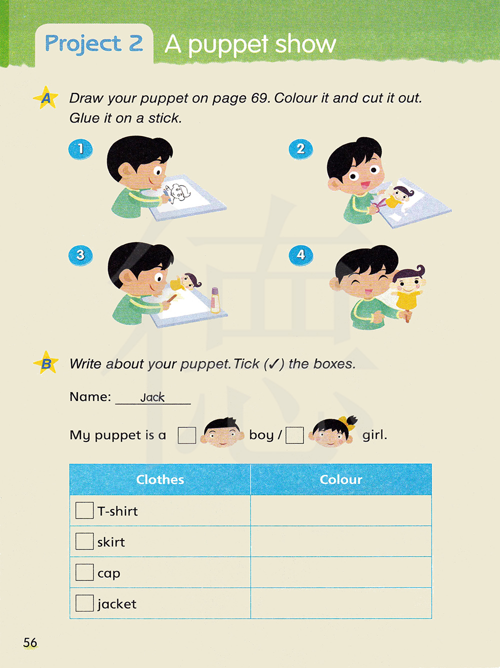 写写你的木偶。在方框里打勾。