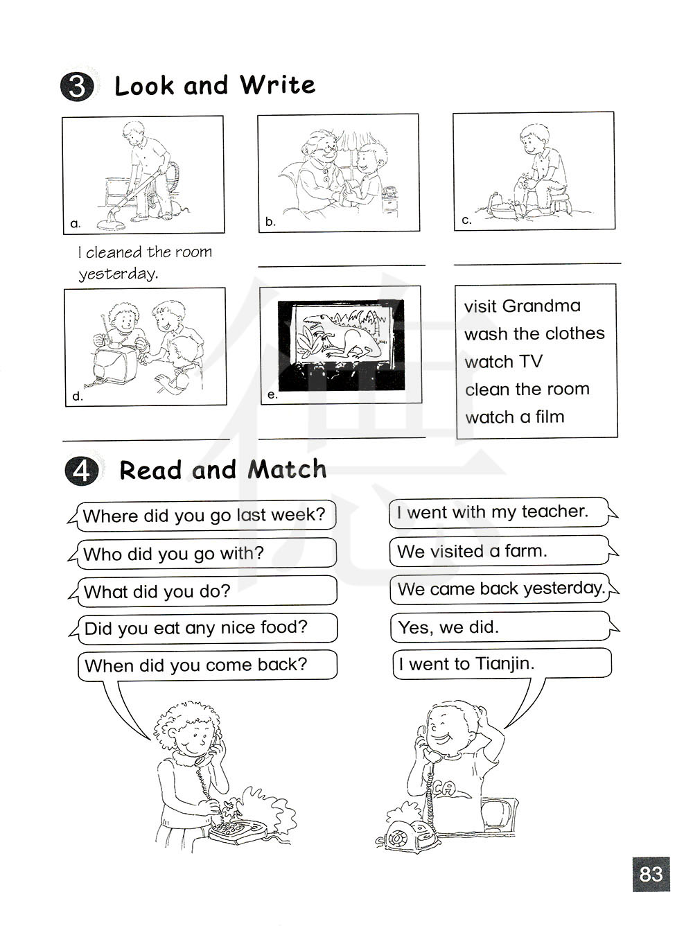 看望奶奶 洗衣服 看电视 打扫房间 看电影