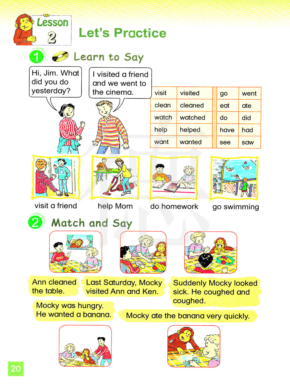 拜访;看望 打扫 观看 帮助 [00:50.54]want wanted想要 去 吃 做 有 看见