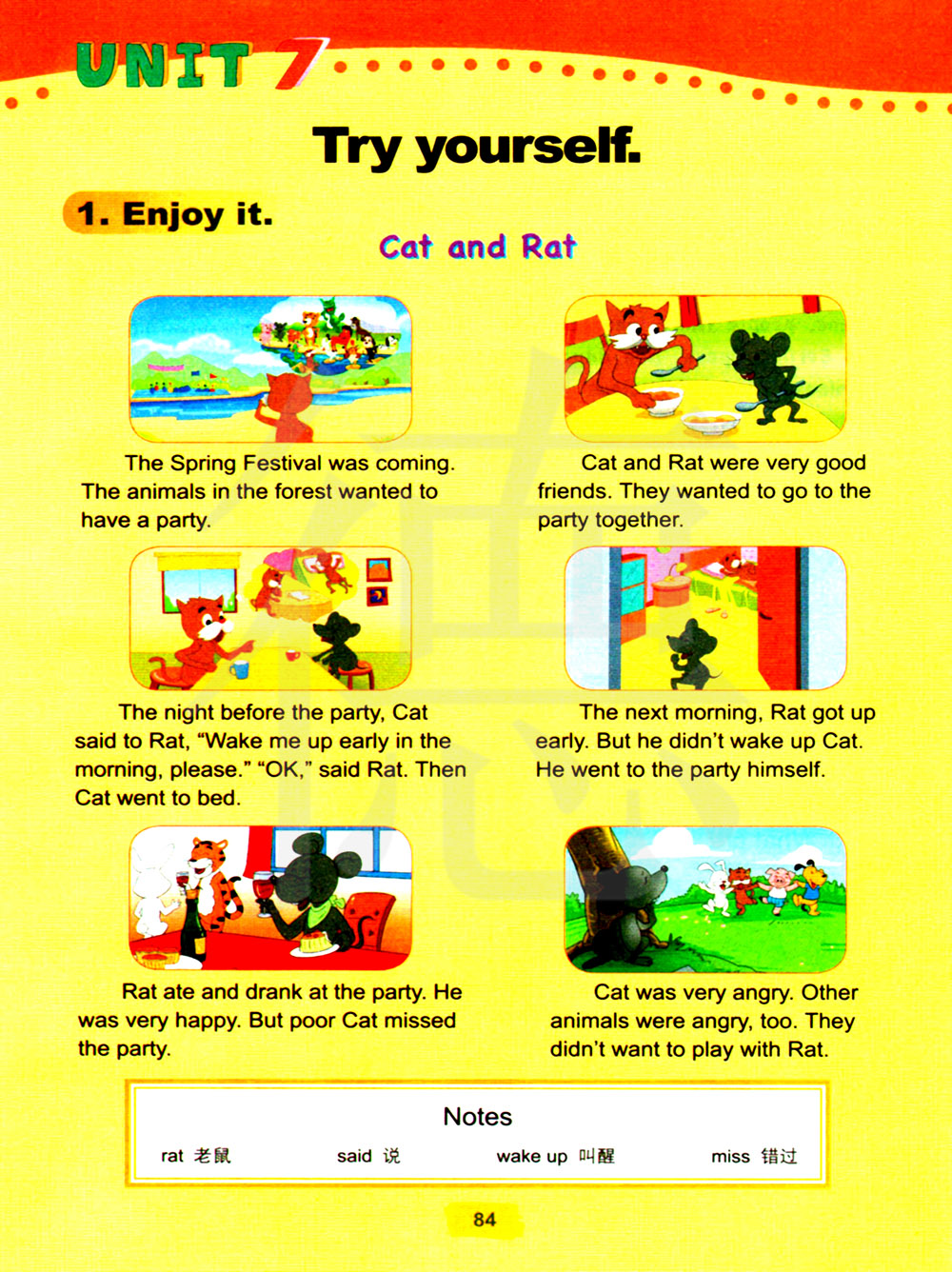 第二天早上,老鼠起得很早。但是他没有叫醒猫,他一个人去参加了聚会。