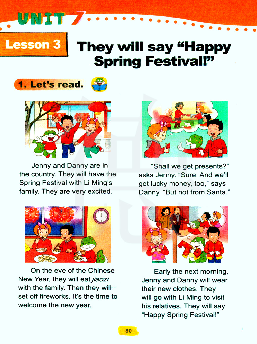 珍妮和丹尼正在乡下。他们将会和李明的家人一起过春节。他们都非常兴奋。