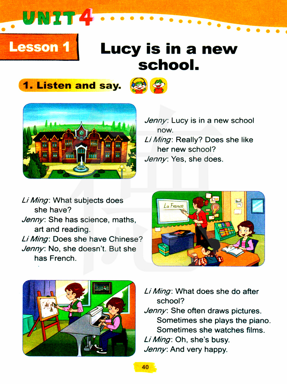 露西现在在一所新的学校里。真的吗?她喜欢她的新学校吗?是的,她喜欢。