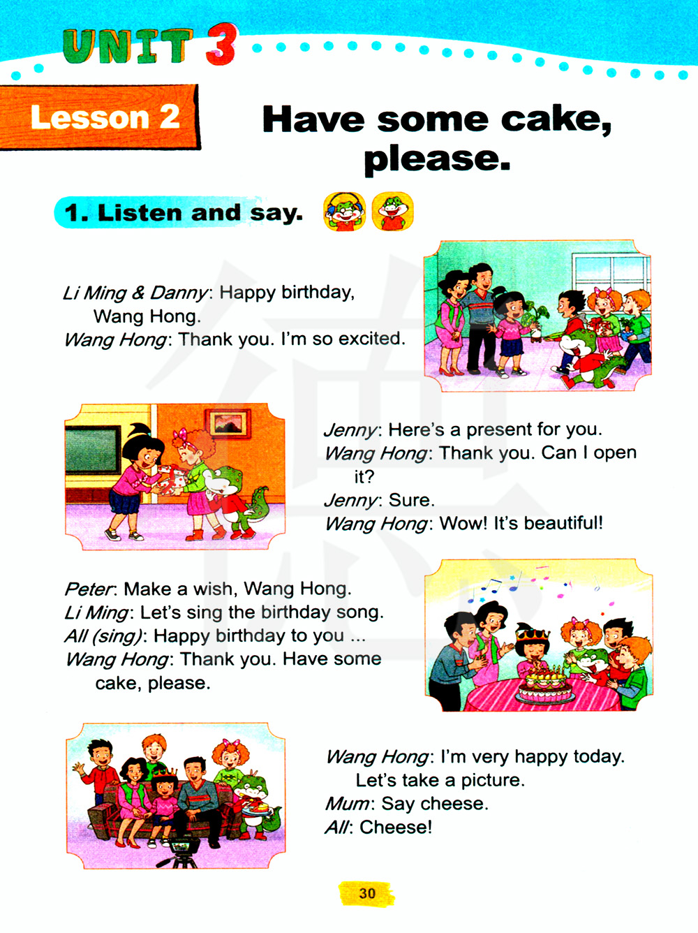 祝你生日快乐……谢谢。请吃一些蛋糕吧。
