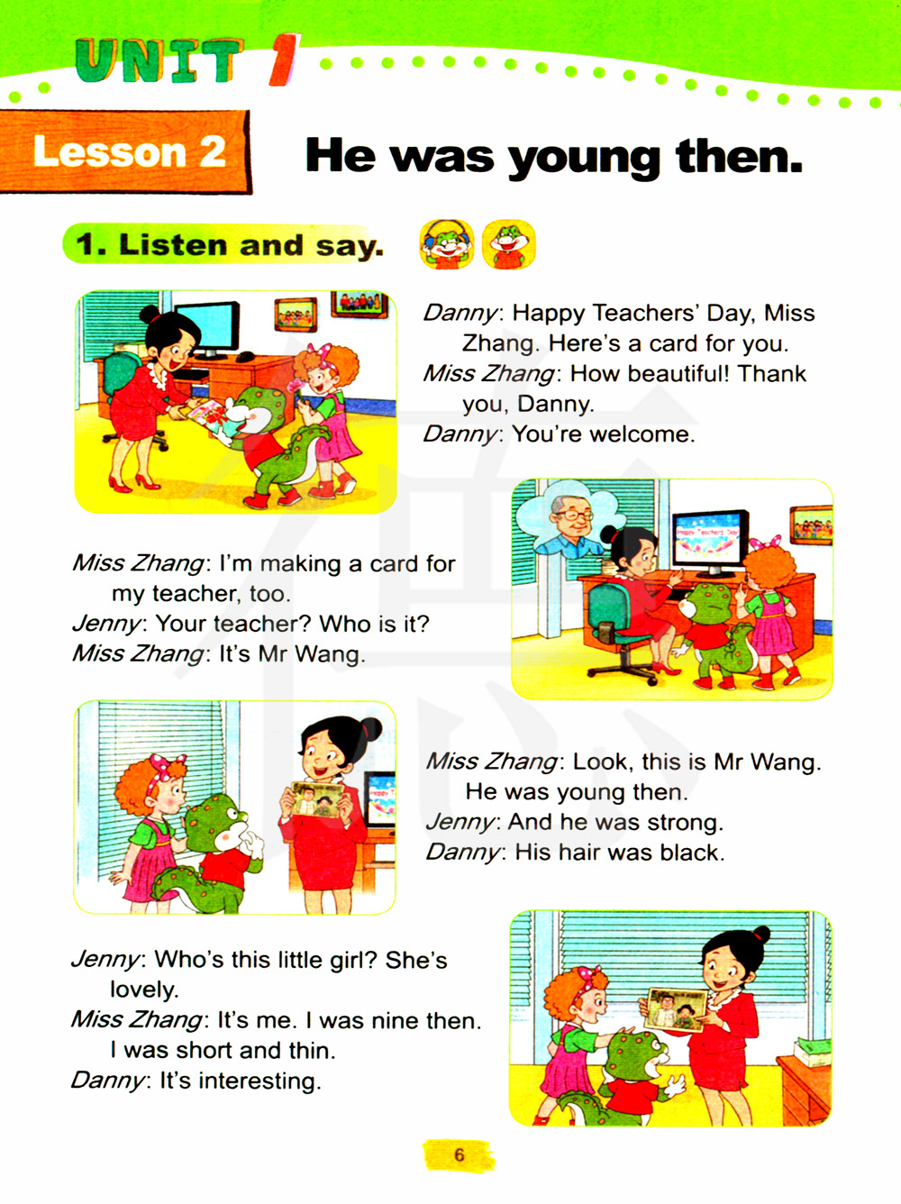 教师节快乐,张老师。这张卡片是送给您的。好漂亮!谢谢你,丹尼。不客气。