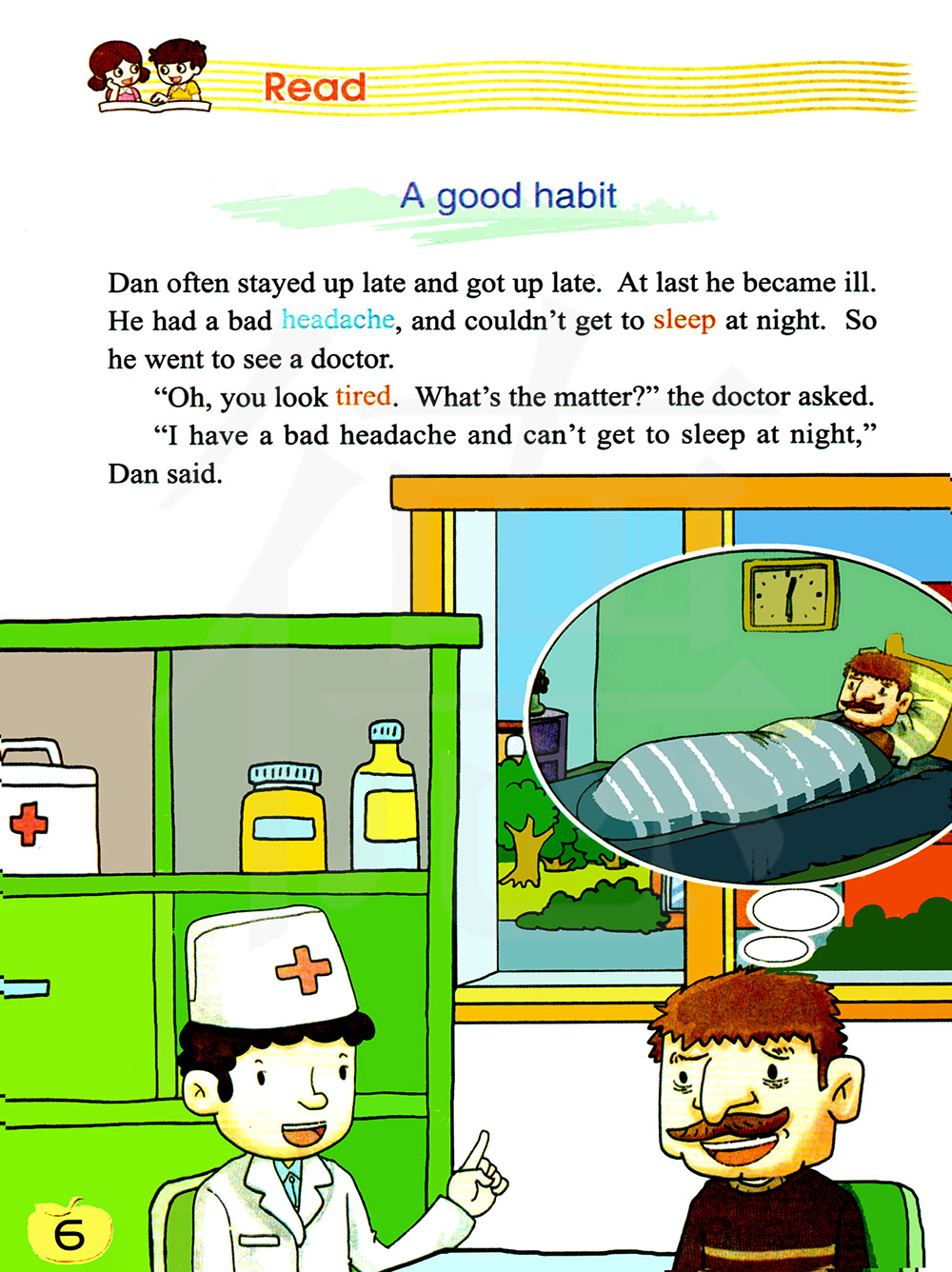 丹经常熬夜,很晚起床。 .最后他病了。 他头疼得厉害, 晚上睡不着。 所以他去看医生。