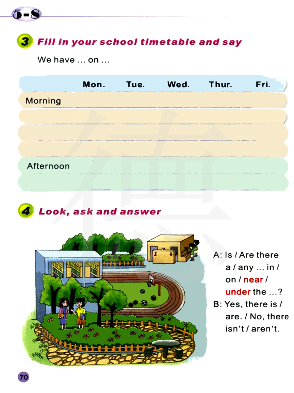 填满你的学校时间表并说一说。 我们有......