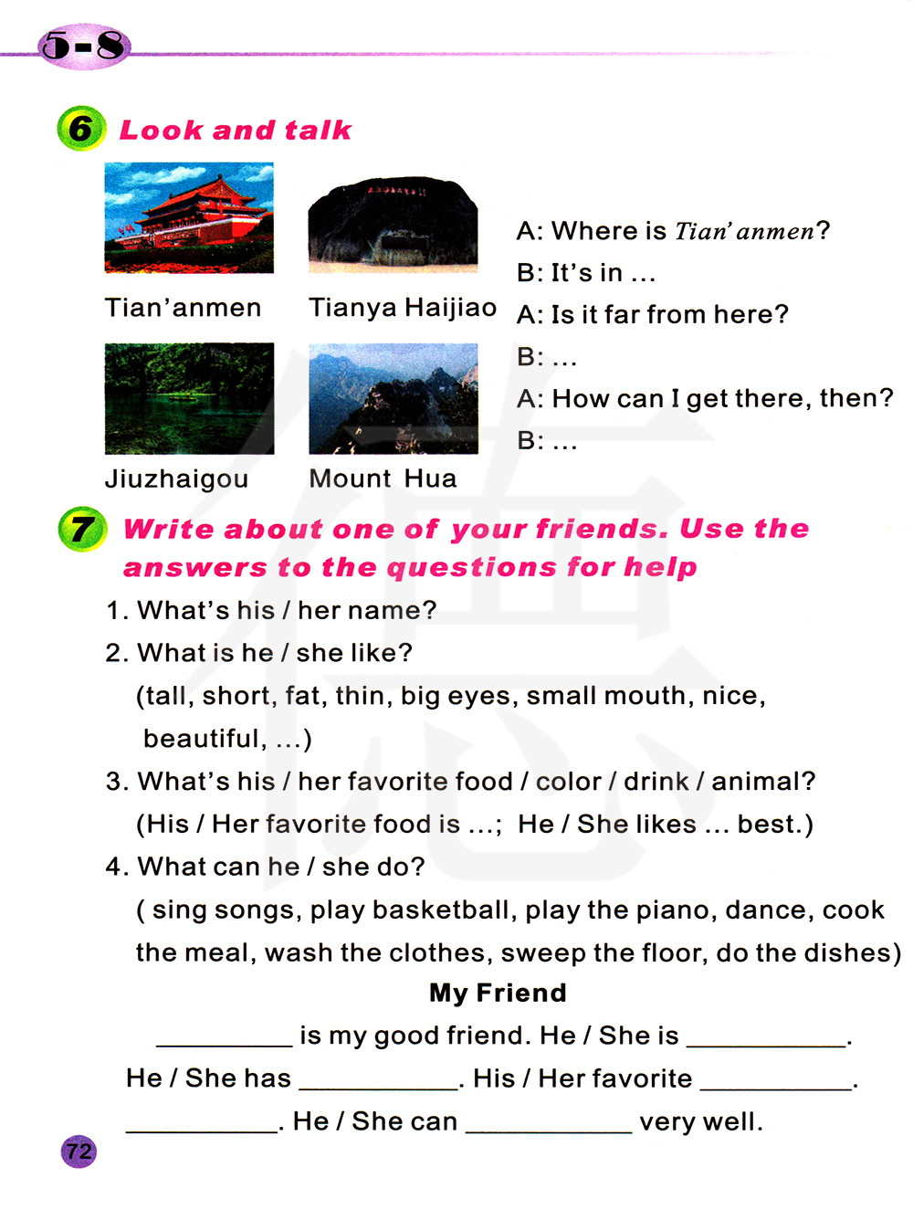 写一写你的一个朋友,使用下列问题的答案来帮助你。