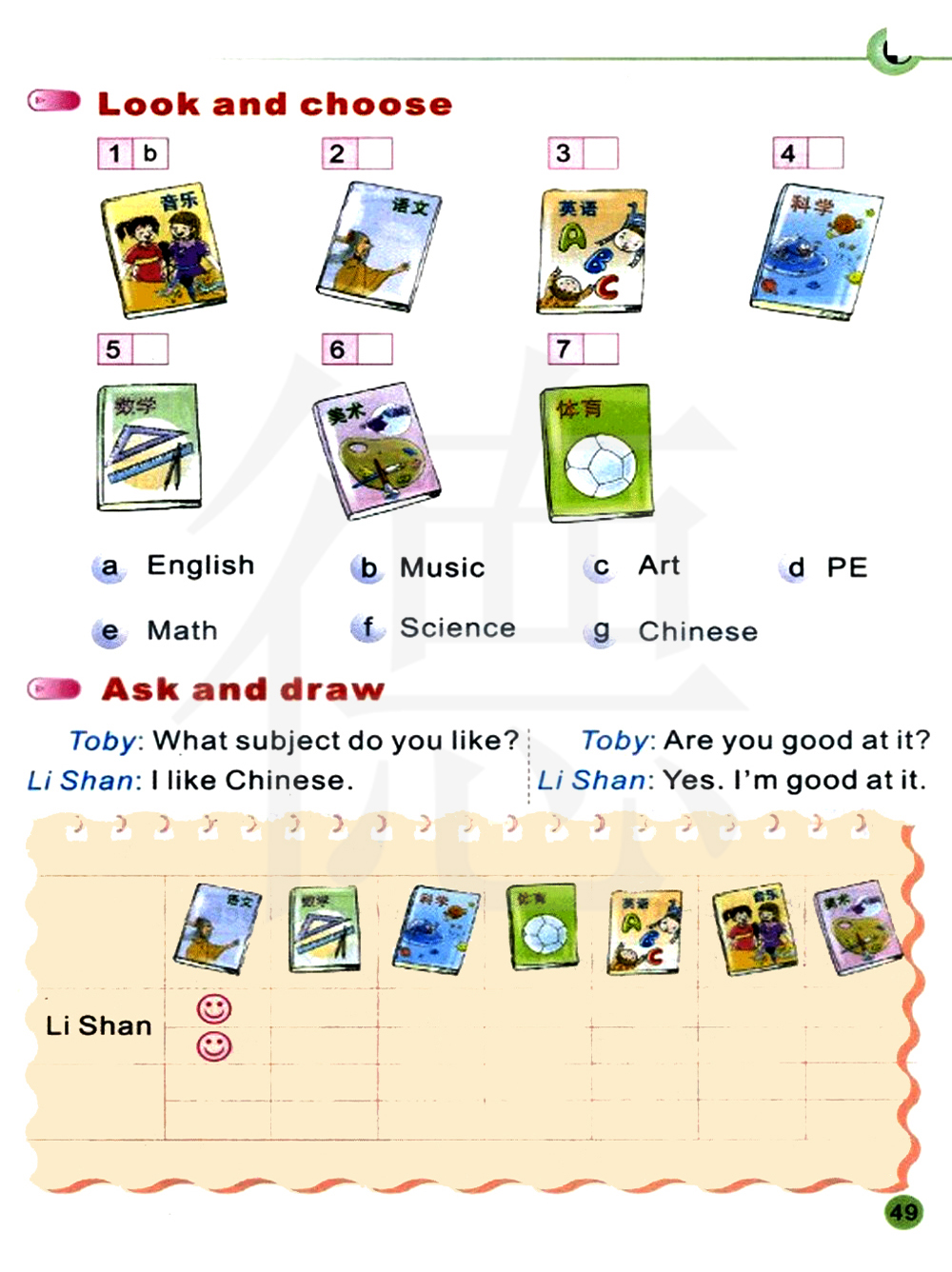 提问并画一画。 我喜欢语文。是的,我擅长。