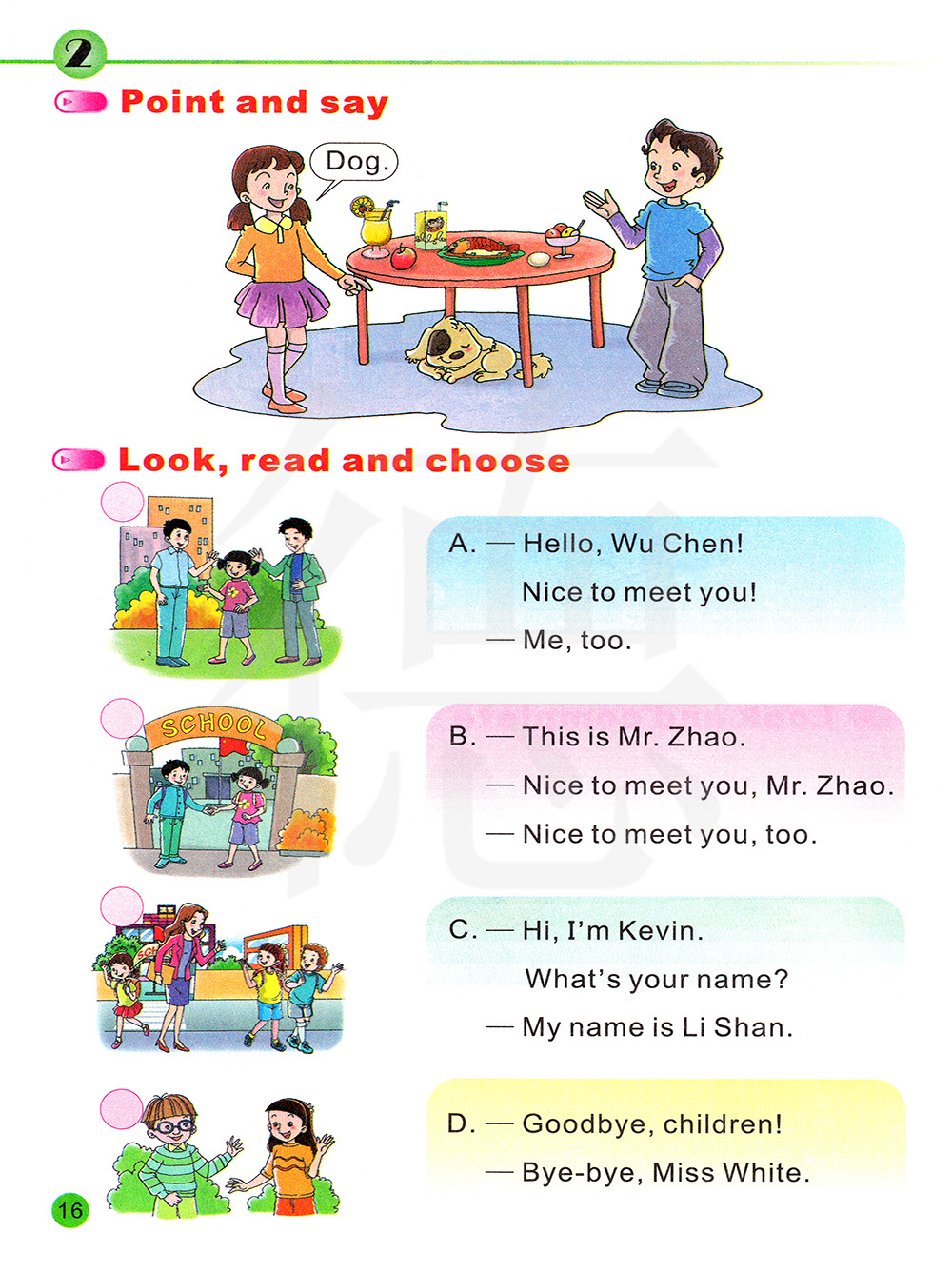 嗨,我是凯文。你叫什么名字?我的名字叫李珊。