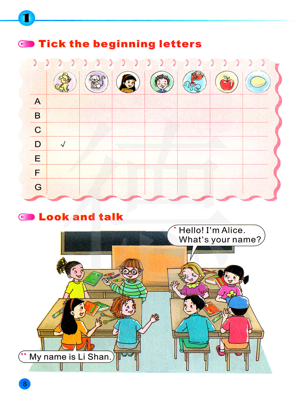 你好,我叫爱丽丝,你叫什么名字?