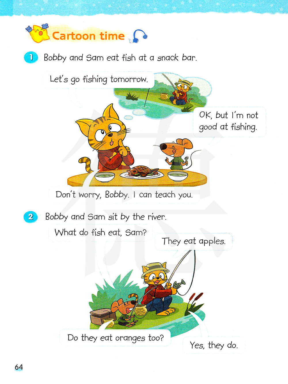 波比和萨姆在小吃店吃鱼。